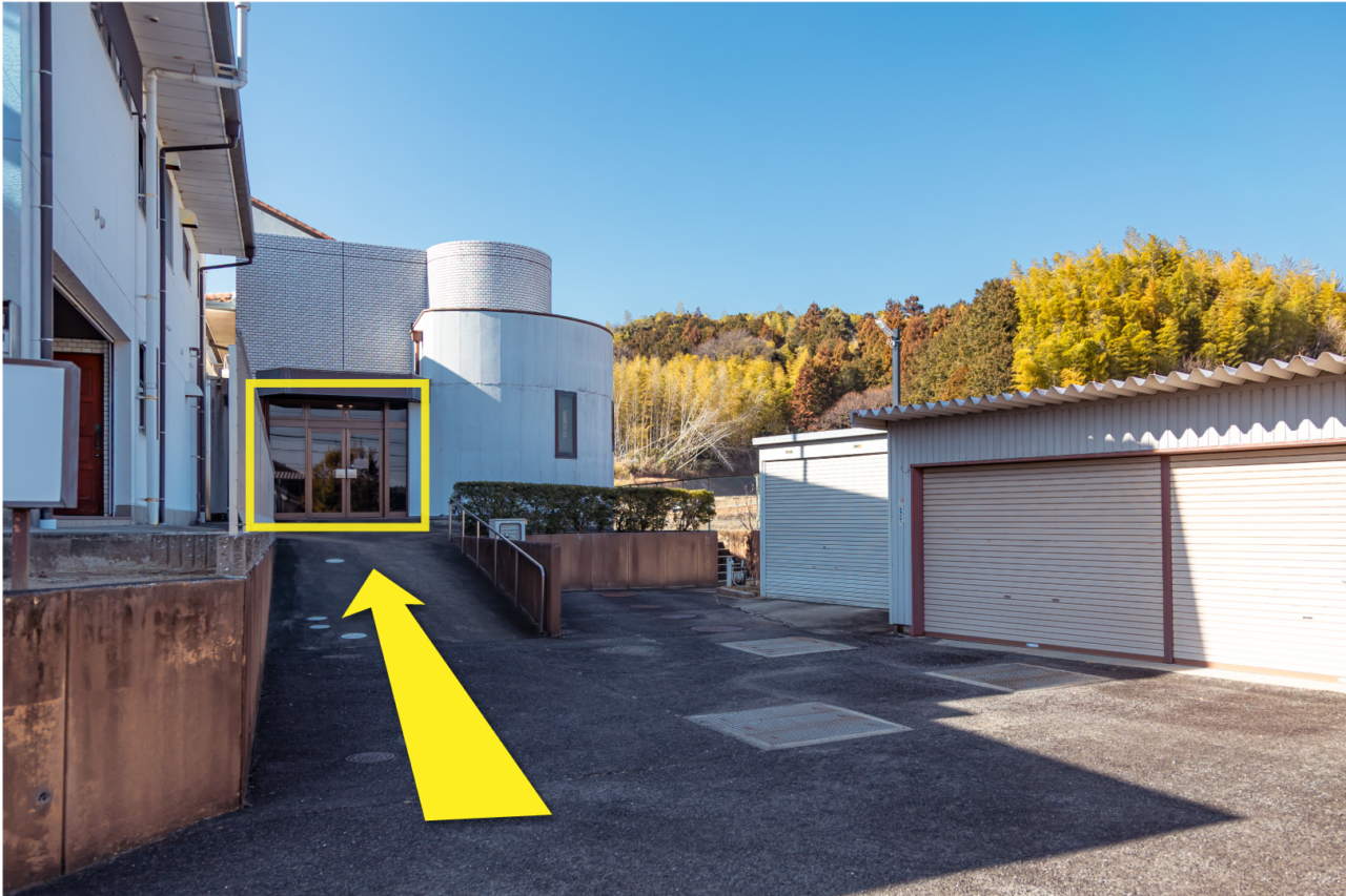 担当者がご案内後、当院の正面駐車場から医院建物の右側を奥までお進み下さい。